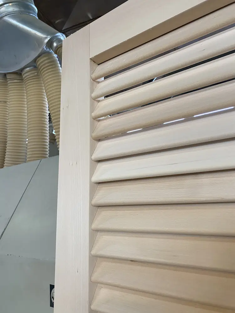 - Lamelele fixe sunt așezate într-un unghi precis, permițând o bună ventilație și filtrare a luminii, fără a compromite intimitatea – un detaliu funcțional și decorativ.